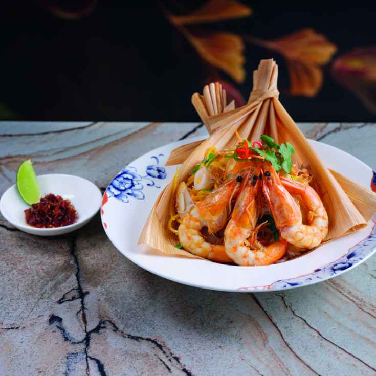 Arrival and reception area of Pan Pacific London, looking towards Orchard Lounge